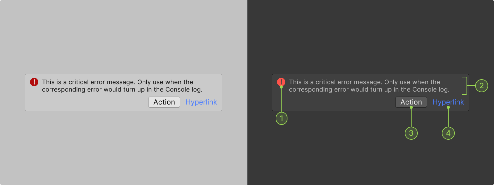 Do not begin the error or warning message with “Error” or “Warning” as the color styling and associated icon makes this wording redundant.